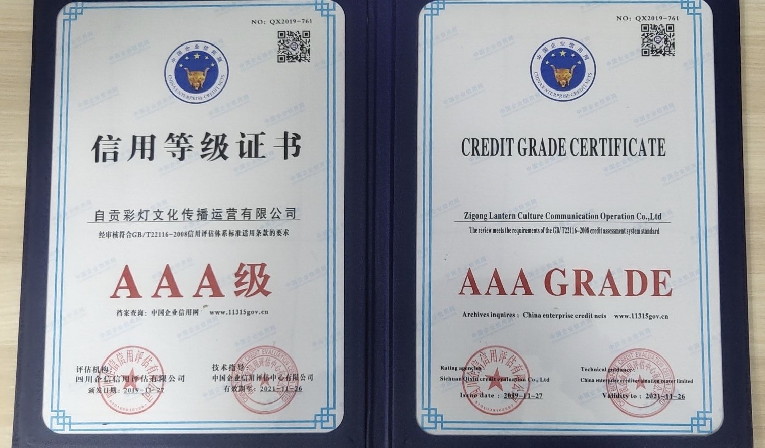2019年11月,獲得AAA級(jí)信用企業(yè)認(rèn)證。