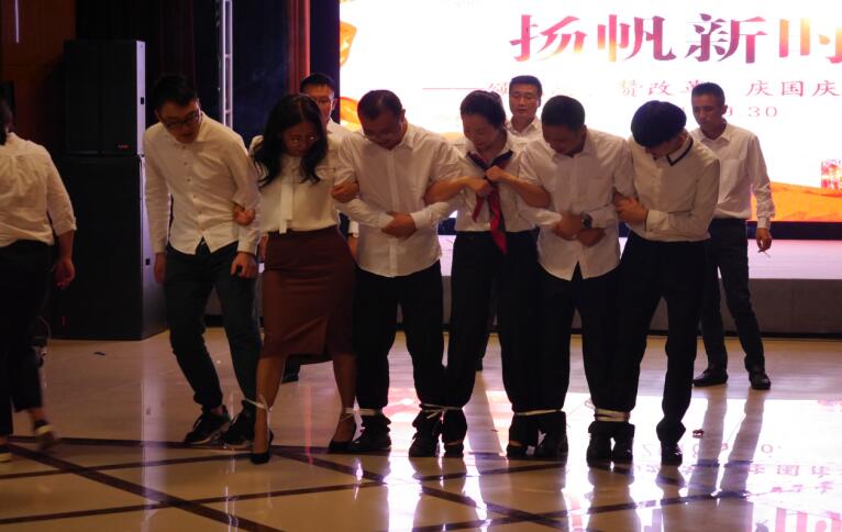 公司總經(jīng)理沈宏躍的一首《我愛你,中國》將整個(gè)活動(dòng)推向高潮,高亢響亮的歌聲使臺(tái)下觀眾情緒熱情激昂,掌聲不斷。文藝匯演結(jié)束后,公司全體員工分組參與了《齊心協(xié)力》和《看動(dòng)作猜成語》等6個(gè)團(tuán)體游戲。游戲過程中,大家奮力爭先,動(dòng)作詼諧,引來現(xiàn)場(chǎng)笑聲不斷。游戲結(jié)束后,公司全體員工集體合影,并齊祝祖國繁榮昌盛。