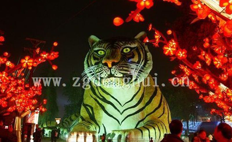 ——大廣場上,高達(dá)16米《吉象和春》燈組以“春”為藝術(shù)造型且用自貢特有的工藝?yán)υ幤慷,中間配以變色虎字圖案,構(gòu)思精妙,造型優(yōu)美且大氣磅礴,將2010創(chuàng)意為虎字圖案,祝愿各族人民在虎年的生活如祥如意、風(fēng)調(diào)雨順、幸福安康!按骸笔侨藗儗(duì)美好生活的向往,充分彰顯了中華民族活力四射,奮發(fā)向上的時(shí)代面貌和美好前景。